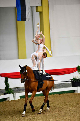 Team III ließ sich die Chance auf einen internationalen Start ebenfalls nicht entgehen. Ein riesengroßer Dank geht an dieser Stelle an unsere zahlreichen Unterstützer und Spender, ohne die dieser Start nicht möglich gewesen wäre! Bereits bei der Verfassungsprüfung hatte Loki mit den ungewohnten Bedingungen zu kämpfen, was ihn sichtlich nervös machte. Die Pflicht war daher von hoher Geschwindigkeit geprägt, was leider dazu führte, dass sowohl Voltigierer als auch Pferd unter ihren Bestleistungen blieben. Endergebnis war Platz 3. Mit viel Mut und Zusammenhalt zeigte die Mannschaft in der ersten Kür eine verhältnismäßig gute Leistung, trotz Lokis Tempo. In der letzten Kür schlichen sich leider drei grobe Patzer ein, die das Team letztendlich auf den 3. Rang platzierte.