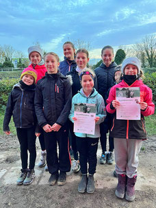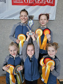 Im Galoppeinzel teilten sich Tamina und Antonia den ersten Platz und beim Galoppdoppelvoltigieren bis 14 Jahre konnten Aurelie und Emilia die goldene Schleife entgegennehmen. Beim Doppel über 14 Jahre sicherten sich Anni und Lina den Sieg. Lina konnte ebenfalls die Prüfung im Junioreinzelvoltigieren gewinnen.