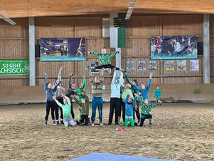 Großen Jubel gab es auch bei den L-Gruppen. Team III holte sich mit Loki an der Longe von Sarah Freund den 2. Platz und unser Team II erturnte sich Platz drei. Sie voltigierten auf dem noch unerfahrenen Oskar, vorgestellt von Livia Ratzlaff. Mit ihrem starken Auftritt konnte sich Team III in der Endabrechnung der Landesbestenermittlung der L-Gruppen den Sieg holen, Team II folgte auf dem 2. Platz.